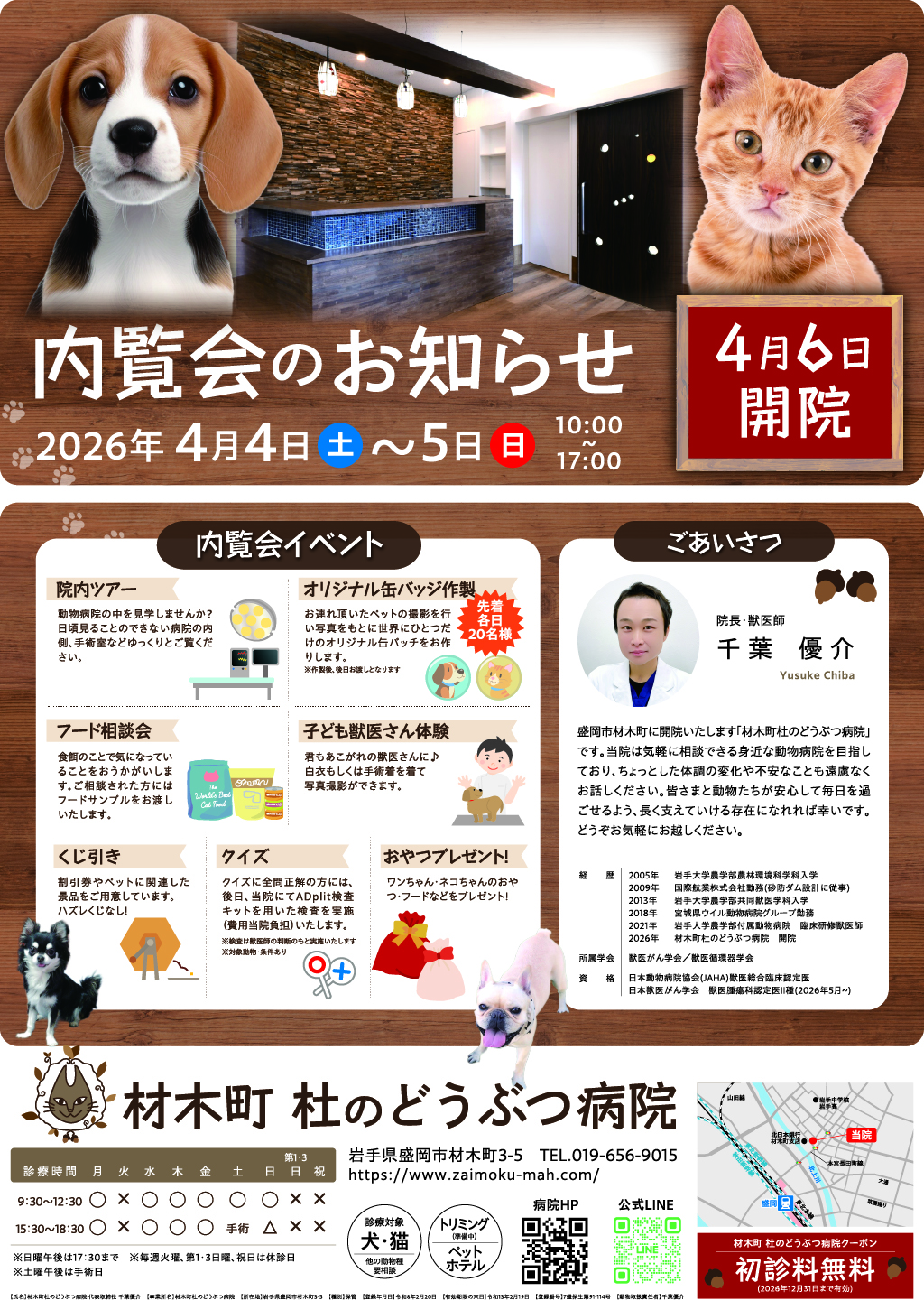 また、地域に密着した動物病院として病気以外の心配事も気軽に相談できる場所を目指しております。